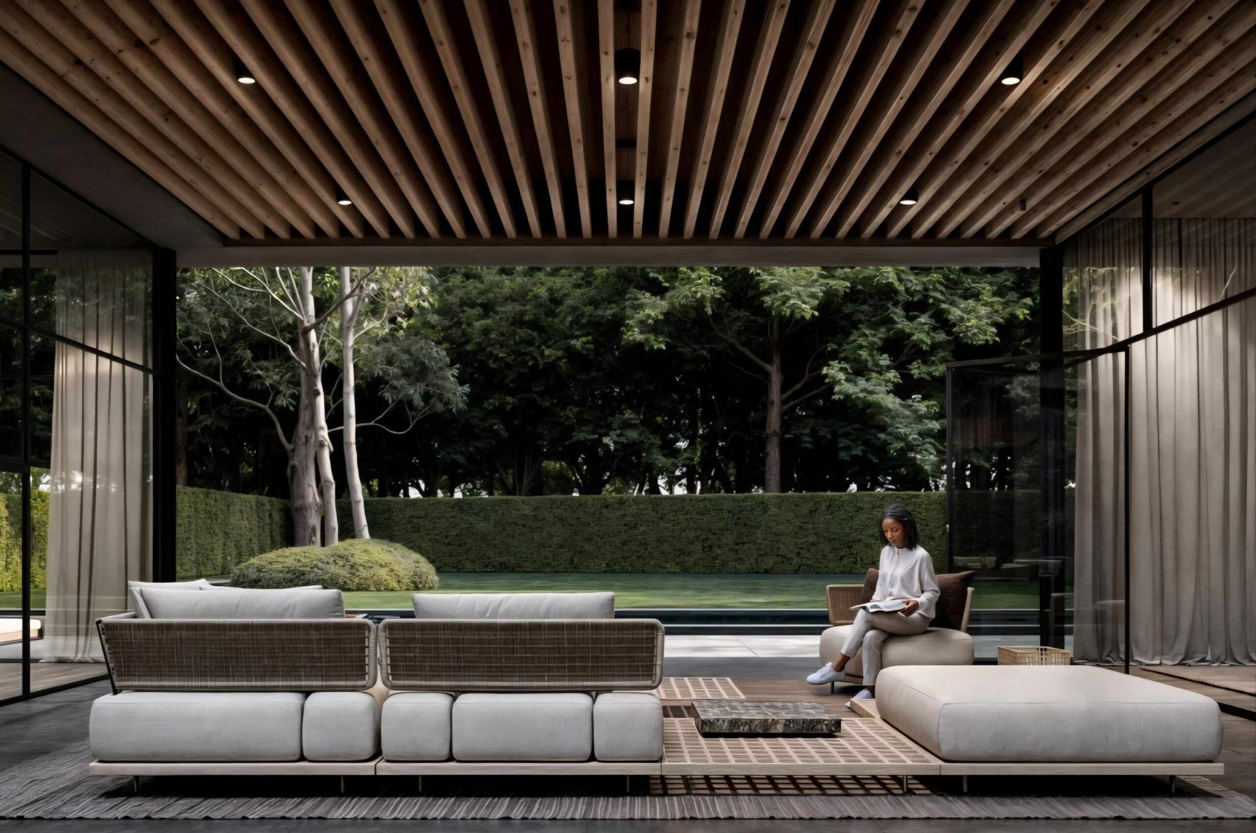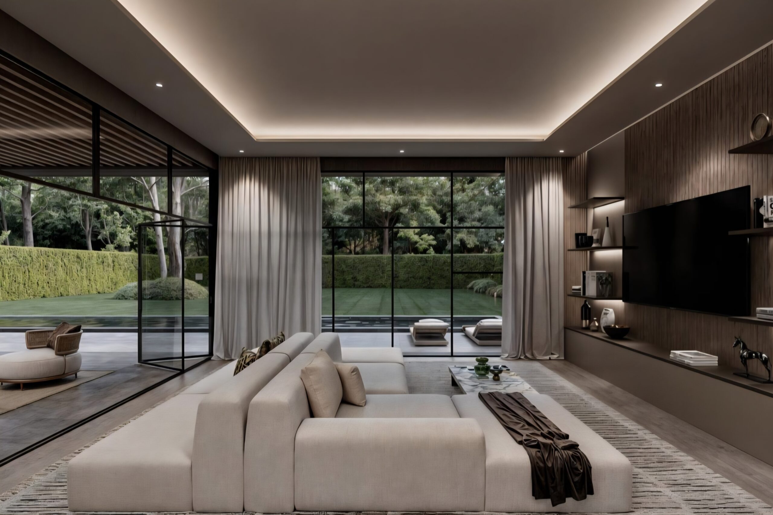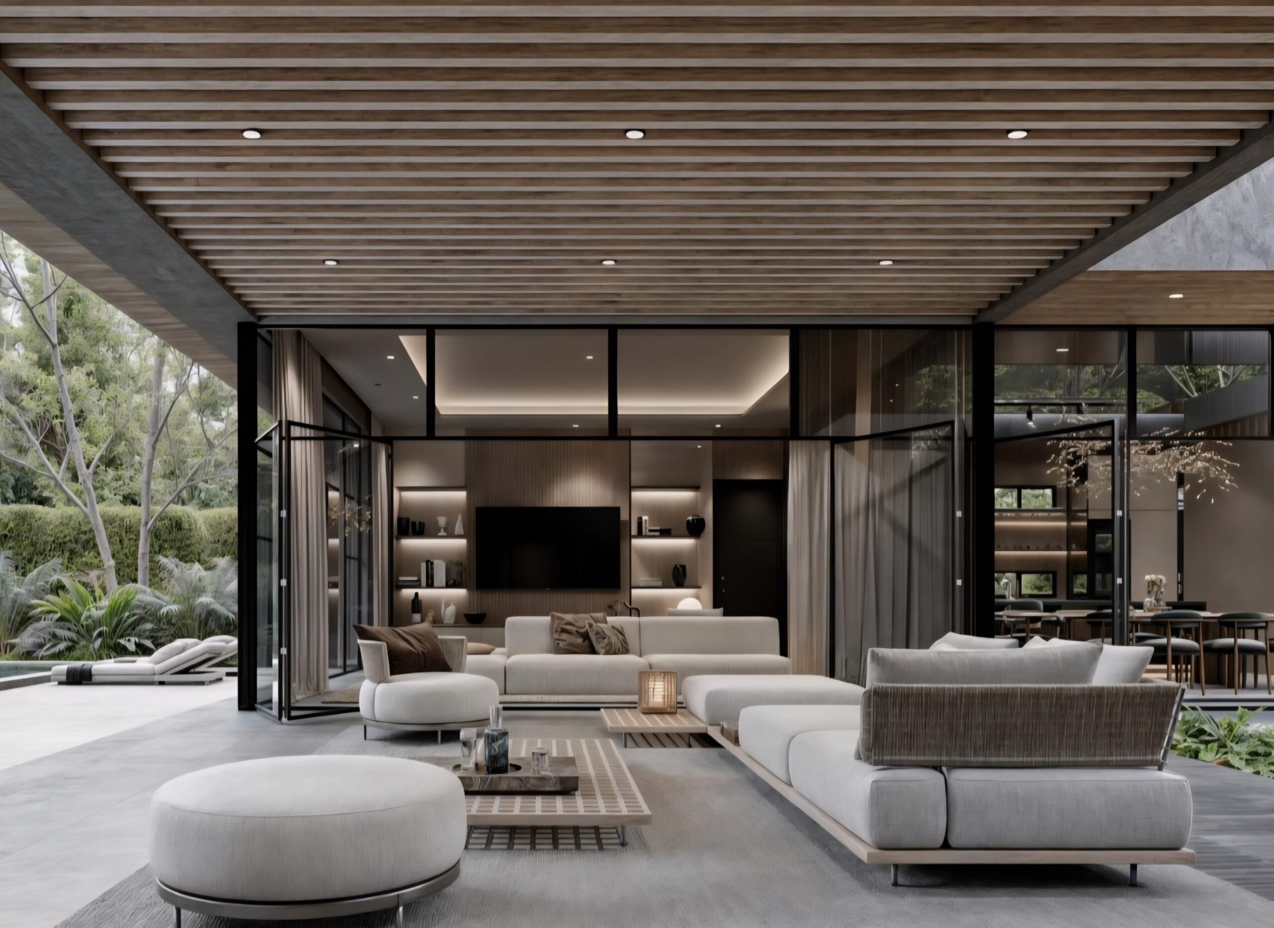 Living room opening to a spacious backyard, ideal for outdoor gatherings